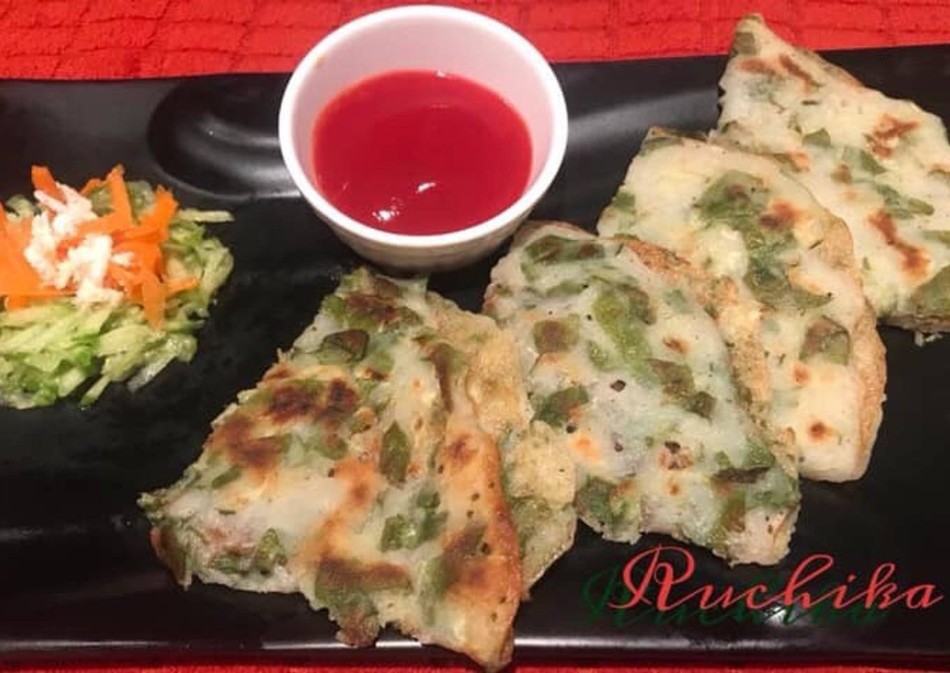 When you see the sides have become brown slightly, turn it and let it cook on the other side too. - When pancake is done remove it from the pan and serve hot & crispy pancake with ketchup or any chutney.