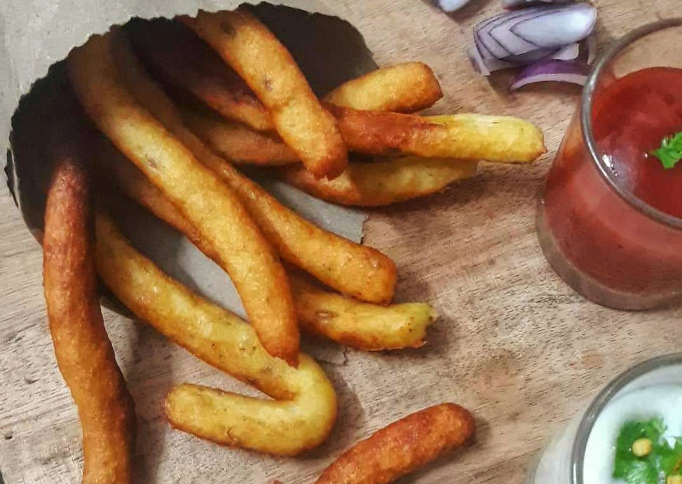 - Plate the churros along with curd dip and ready made tomato sauce. The crispy corn medu vada churros are Ready to Serve.